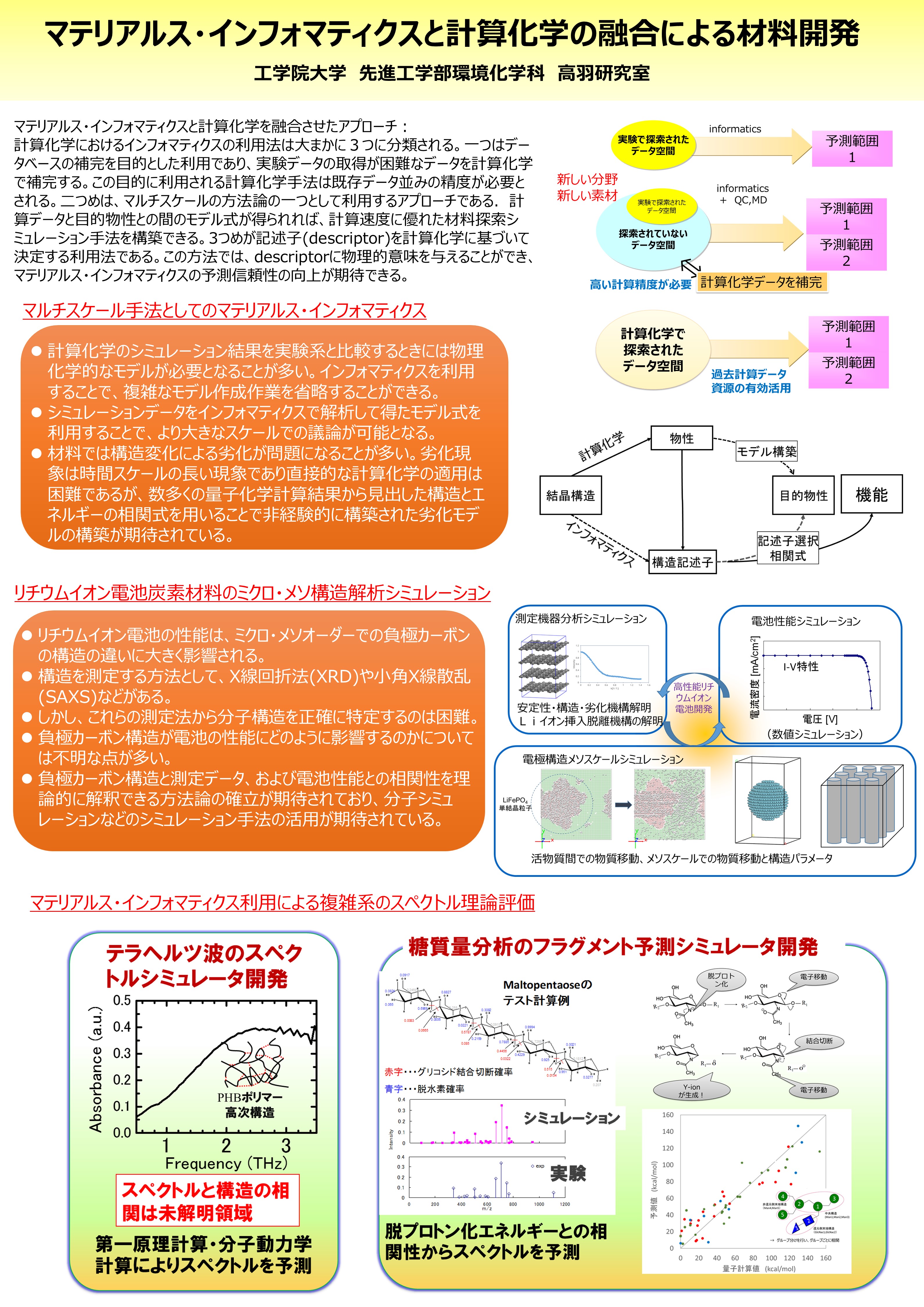 インフォマティクスは多数のデータに基づいて現象をモデル化する方法論として広く利用されている.しかしながら,インフォマティクスでは選択されたデータの物理的背景が希薄であり,予測性が保障されていない.この点においては,ab initio的に現象を再現しようとする計算化学的手法と対極の方法論といえる.しかしながら,両方の方法論は補完的な関係にあることから,両者を連携させることで,これまで活用できなかった計算データを有効活用できる新しい可能性が拓ける