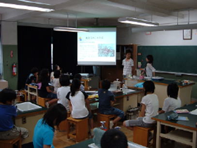 自分が作ったグラフを見て、緑化表面温度とコンクリート表面温度の違いで分かったことを考えてもらい、班ごとに発表してもらった。また、何故緑化部分の方が表面温度が低いのかも考えてもらい、ヒートアイランド現象が何で問題になっているのか、どうしたらヒートアイランド現象は抑制できるのかも同時に考える良い機会になったと考えられる。小学5年生では、データとしてある数値をグラフ化するといった作業が出来る児童と出来ない児童がおり、算数の延長と理科の延長としての授業も兼ねて良い時間を提供できたと考えられる。