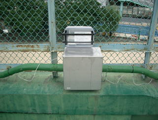 第四日野小学校では屋上緑化を施工してあるために、屋上ではコンクリート表面温度と芝表面温度をシナモニによって計測し、リアルタイムな情報公開を行っている。児童が屋上に上がって実際に表面温度が観察・計測できるように計測機器を児童の目に留まるように設置して、説明書きも添付した。