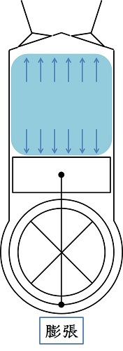 実際のエンジンでは,燃料を燃やしてその熱膨張を利用して