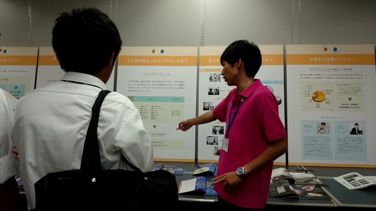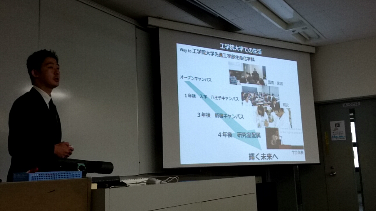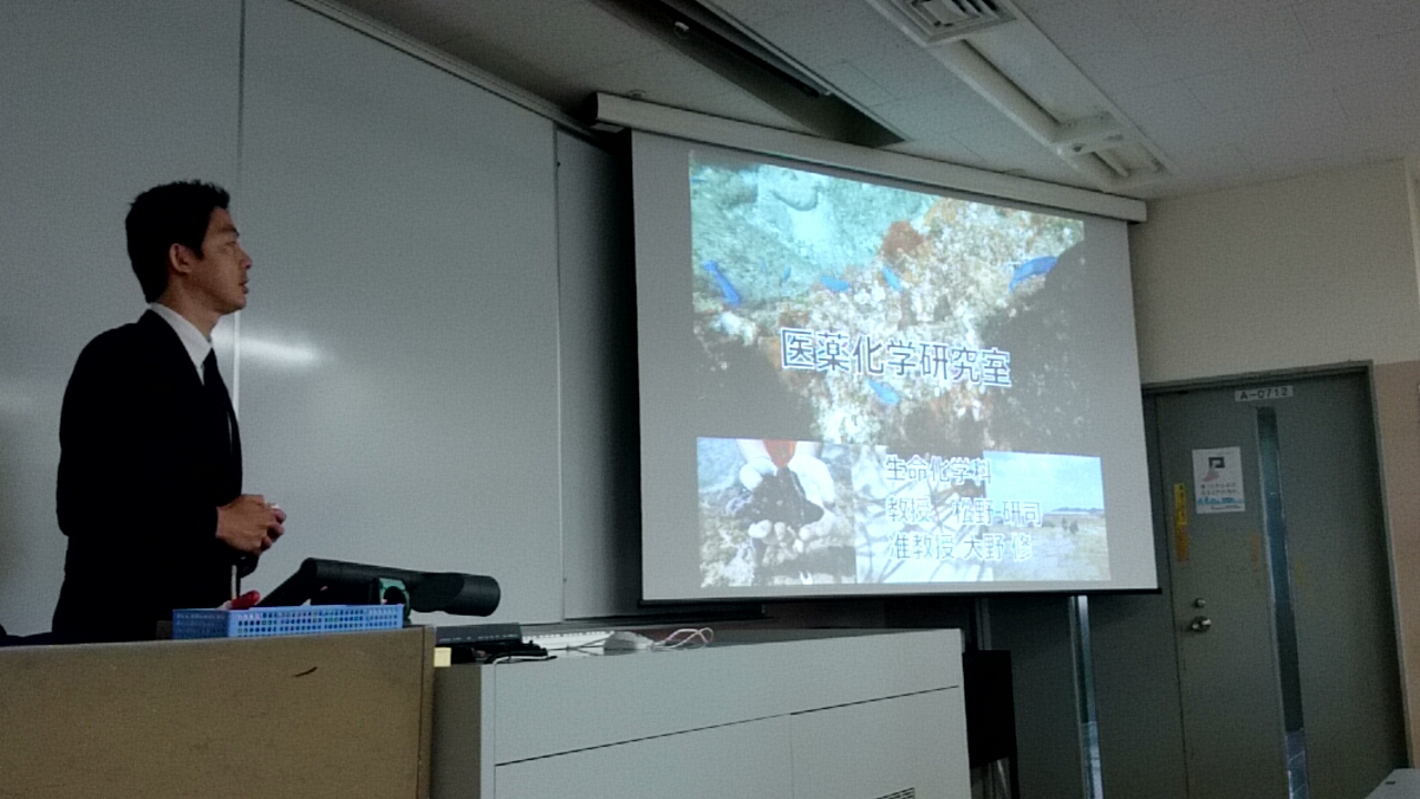 生命化学科のガイダンスで、大野先生に学生生活4年間の流れについて紹介していただきました。