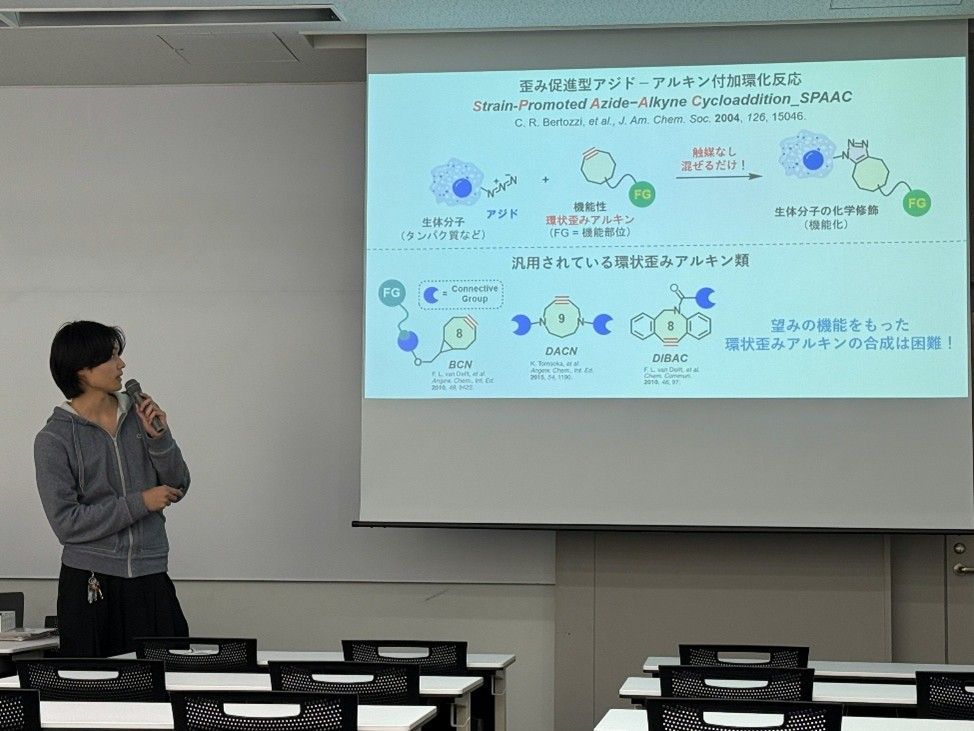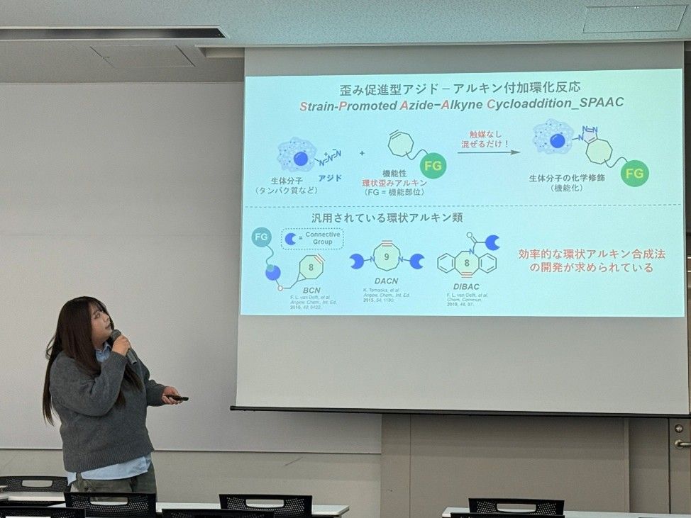 2025年12月22日、天然物医薬化学研究室と生命有機化学研究室で合同報告会を行いました。