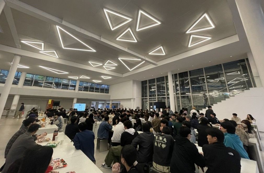 見学会が終わった後は食堂で三年生との交流会が開催されました。