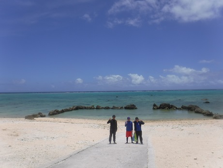 まずは、採集地付近の海岸で記念撮影。空がとても青かったです!